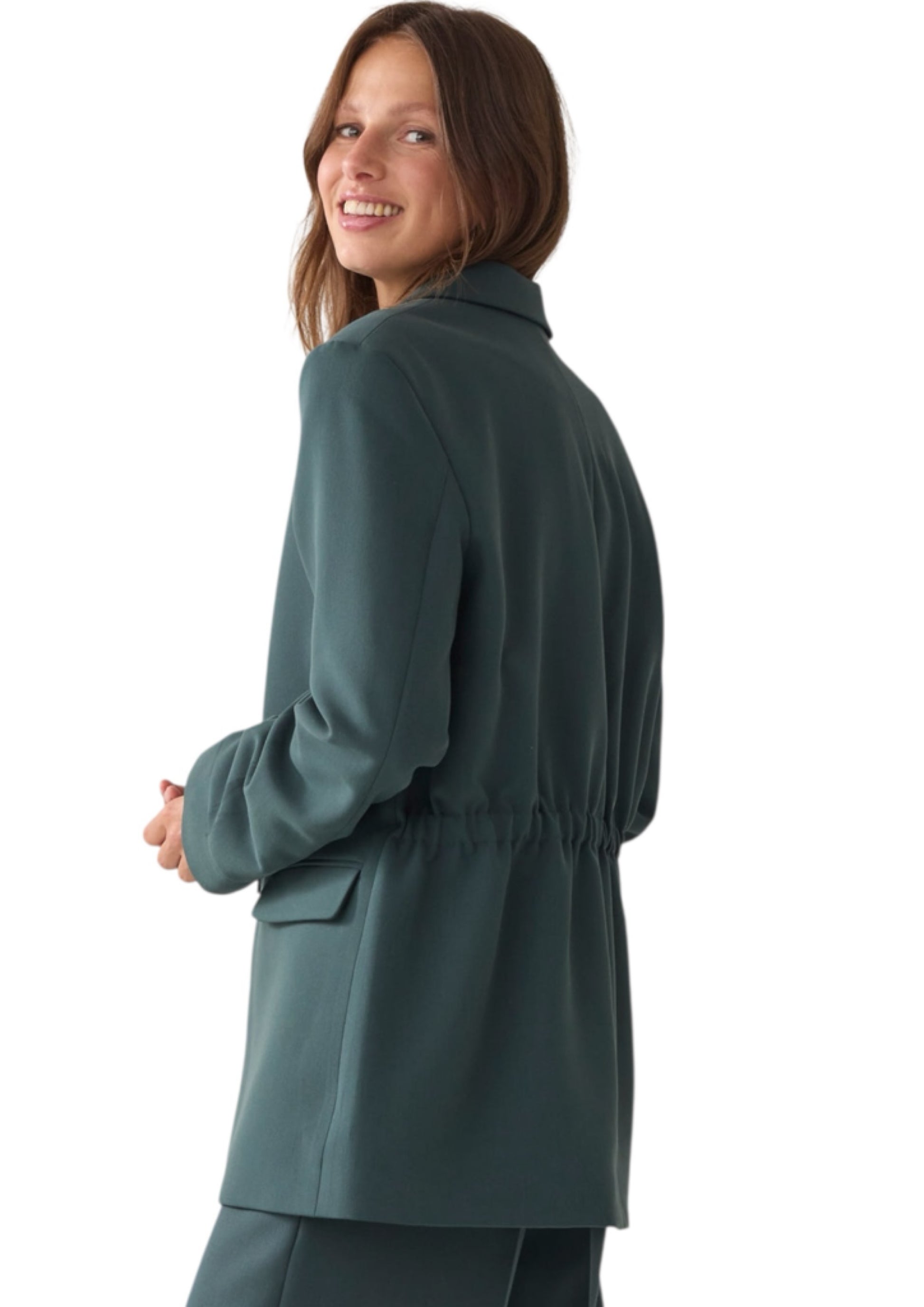 Onze bestseller onder de blazers: de lange boyfriendblazer in een zachte foamkwaliteit. De blazer heeft strookzakken, lange mouwen en een glazende binnenvoering.