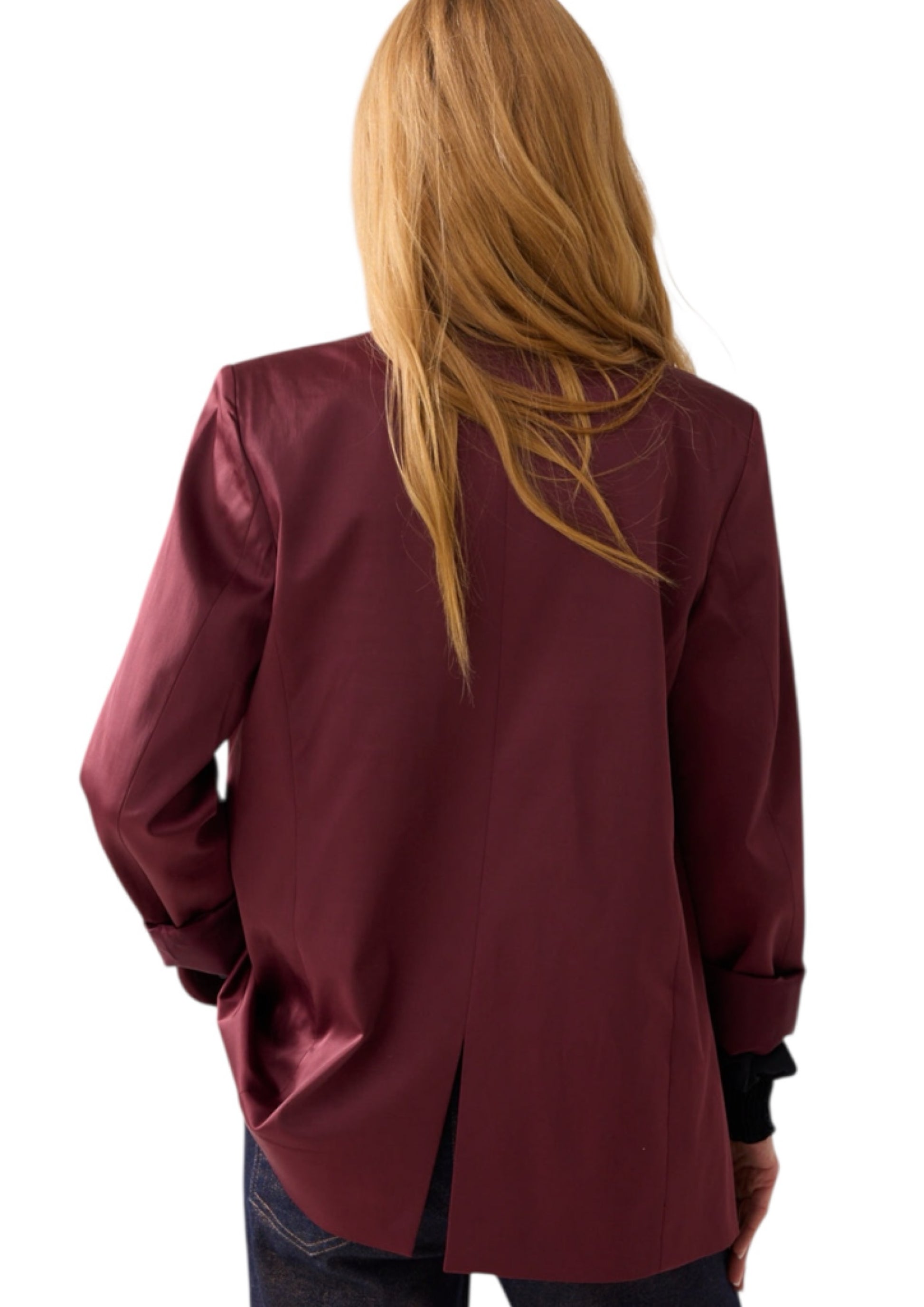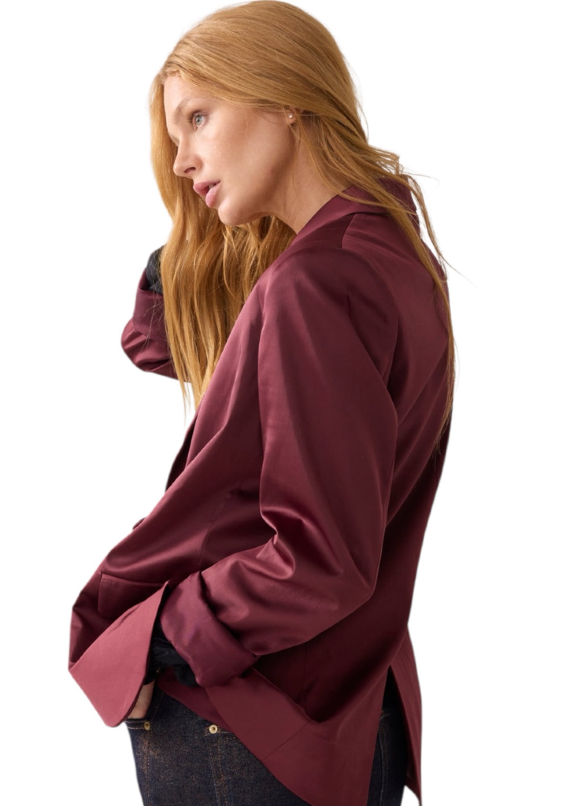Blazer met een matte glans, gemaakt van een stretchstof. Het model heeft een dubbele knoopsluiting waardoor hij zowel als boyfriend fit als iets getailleerd kan worden gedragen.