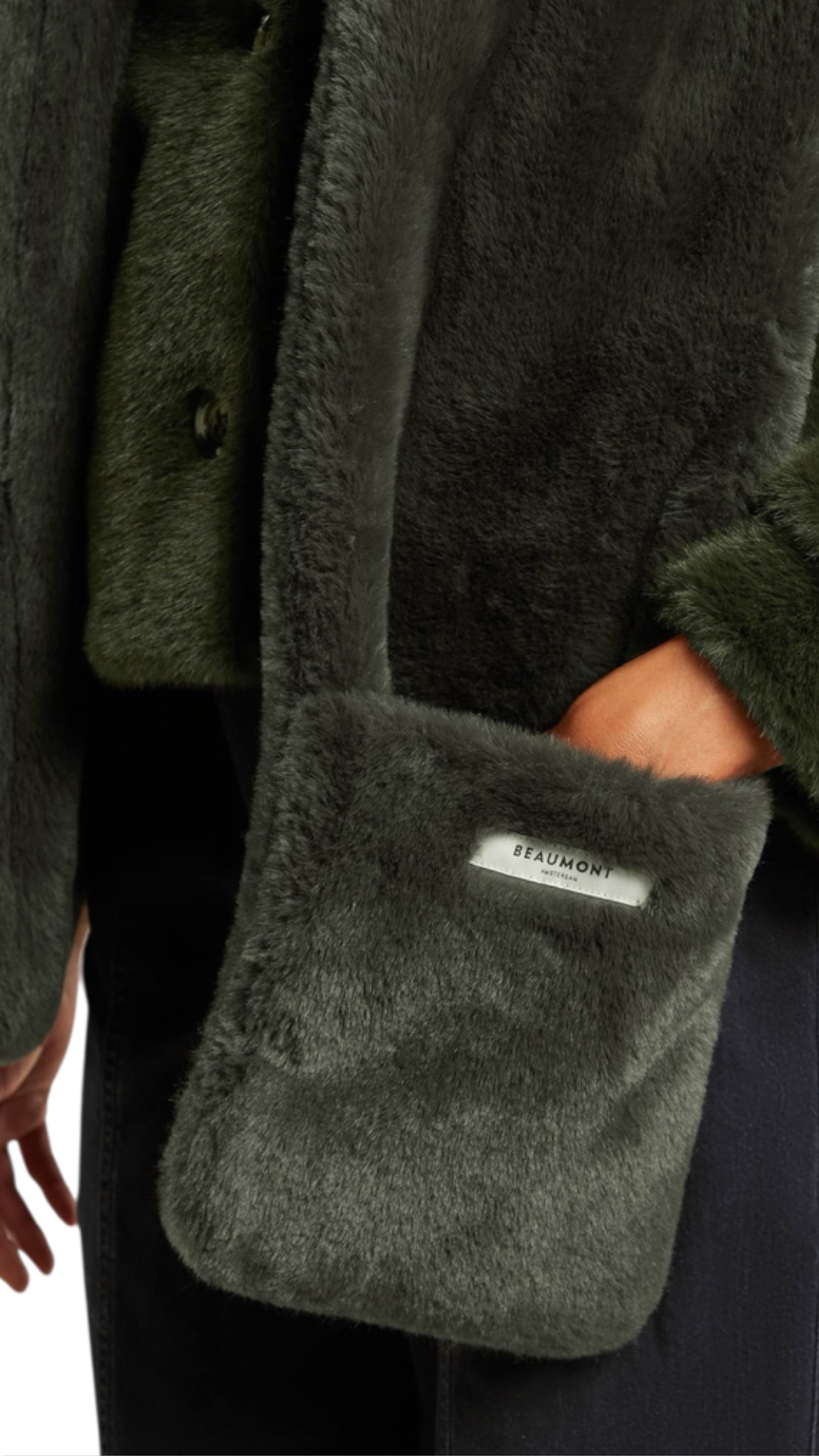 Wikkel jezelf in knusse luxe met deze zachte sjaal van gerecycled imitatiebont, doordacht ontworpen met handige zakken om je handen warm te houden of je benodigdheden in op te bergen. Perfect voor koude dagen: de pluizige textuur en duurzame materialen bieden comfort én stijl, waardoor elke wandeling moeiteloos chic en behaaglijk aanvoelt.