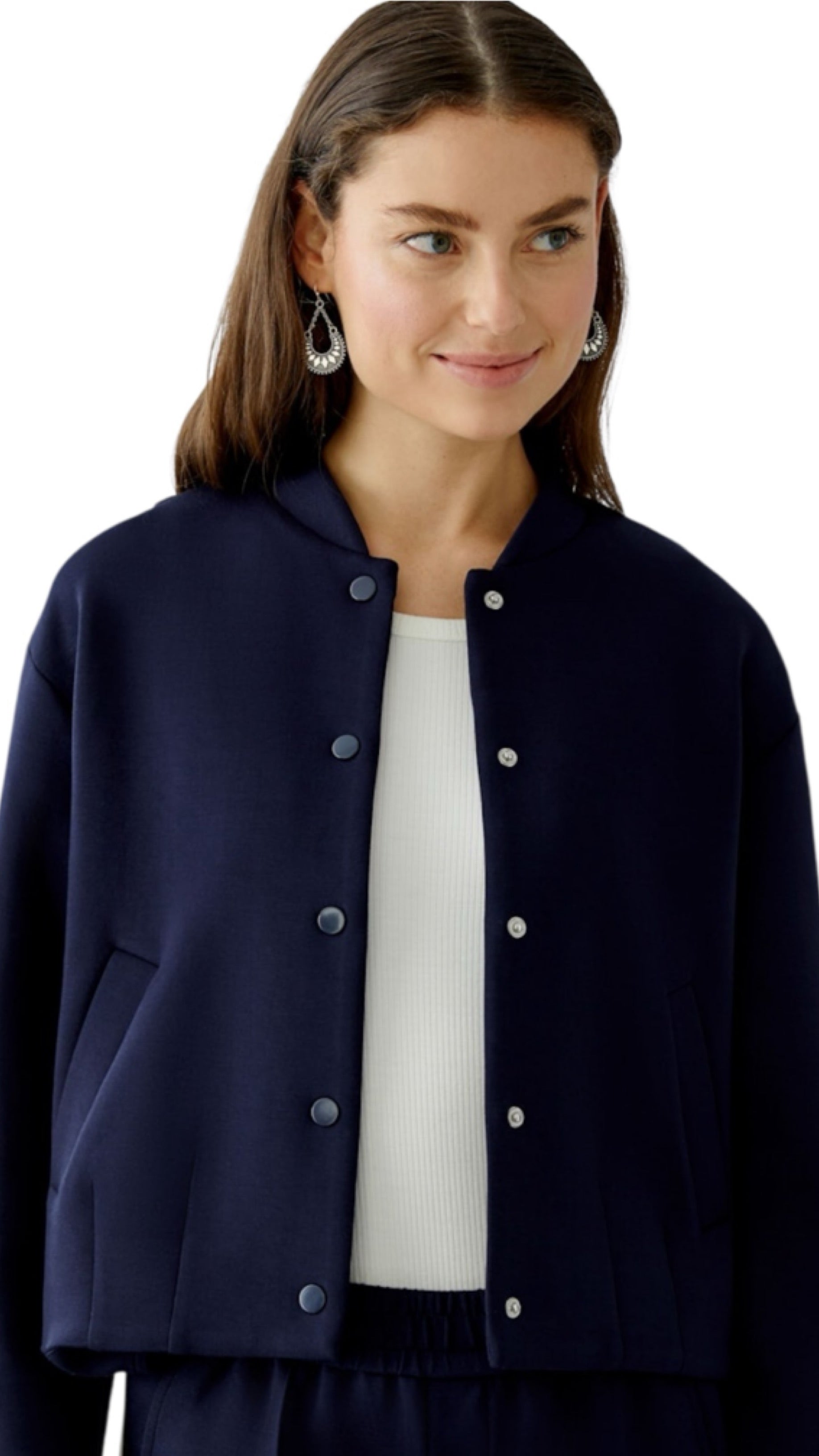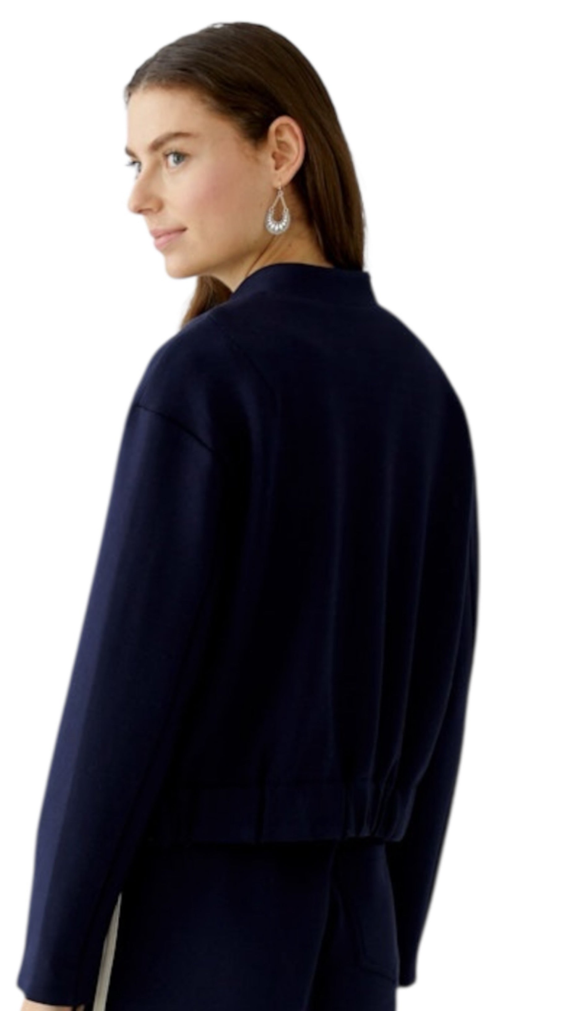 Blouson in modern scuba fabric - straight at the front of the hem, with integrated elastic band at the back