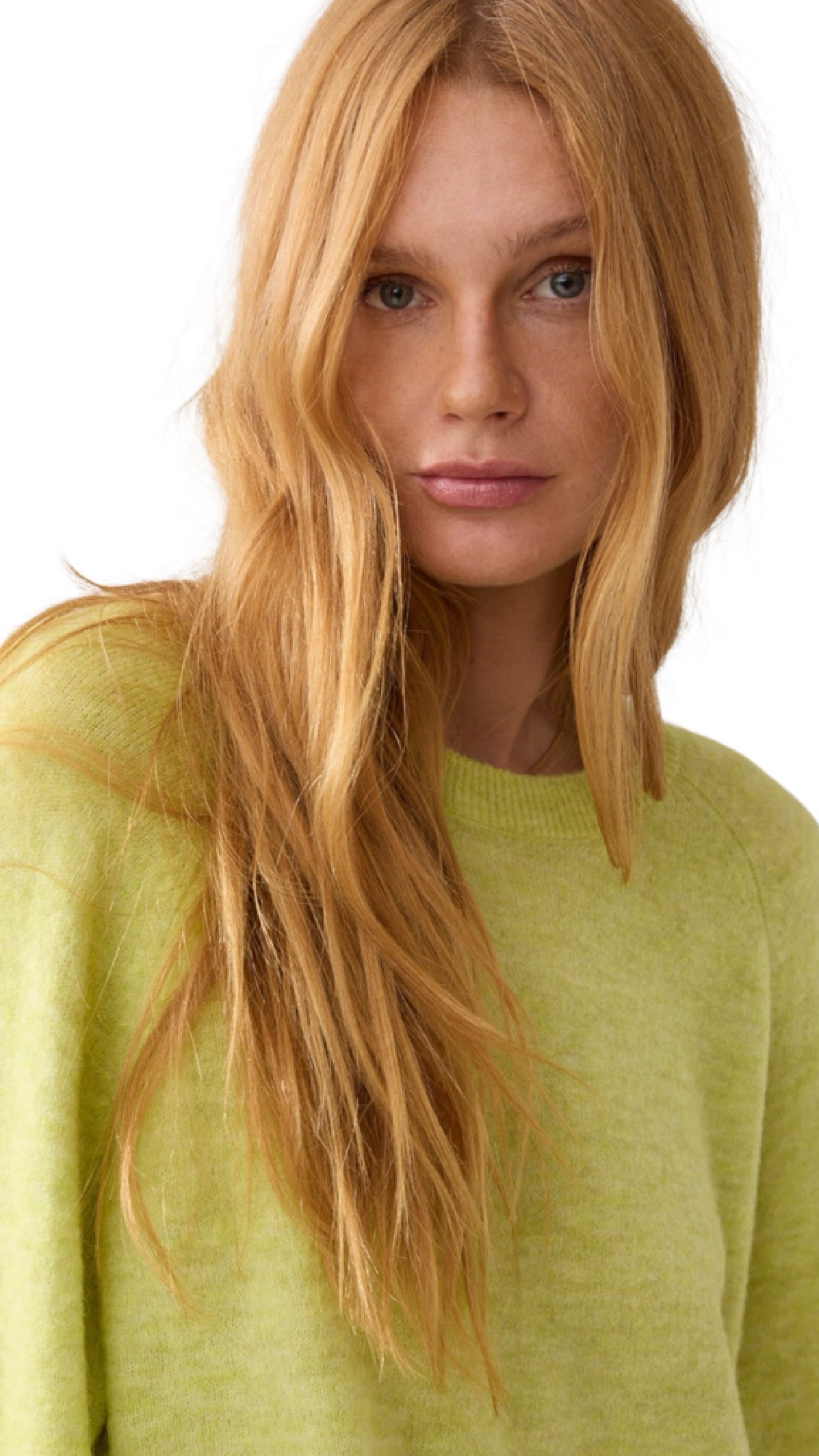 Oversized boxy trui met raglanmouwen en een ronde hals. De trui heeft een licht vervilte look dankzij het alpacablend-garen. De wijdere mouw is verlaagd ingezet.