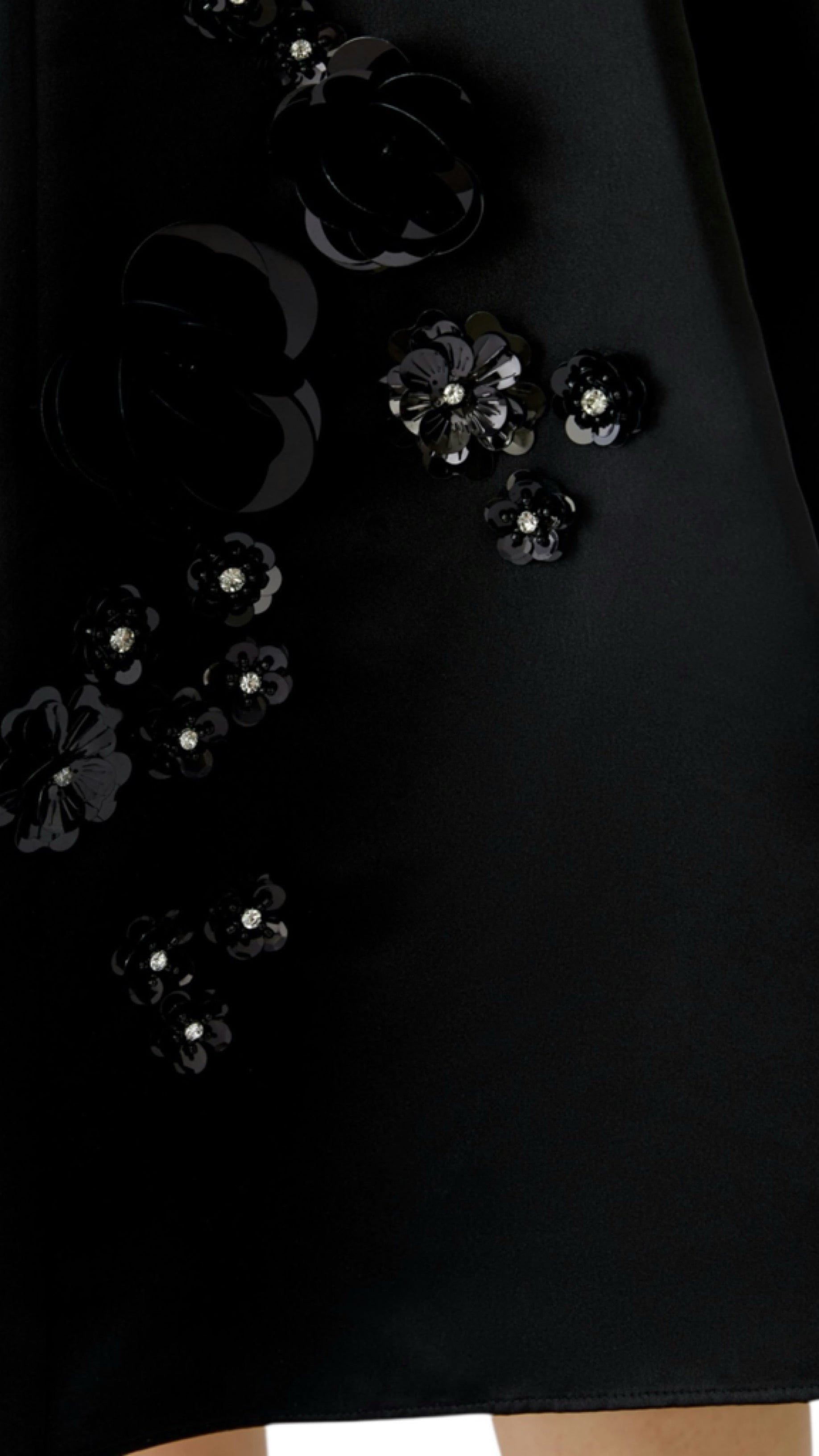 - Fine lustre satin embroidered with flowers (sequins and glittering stones)