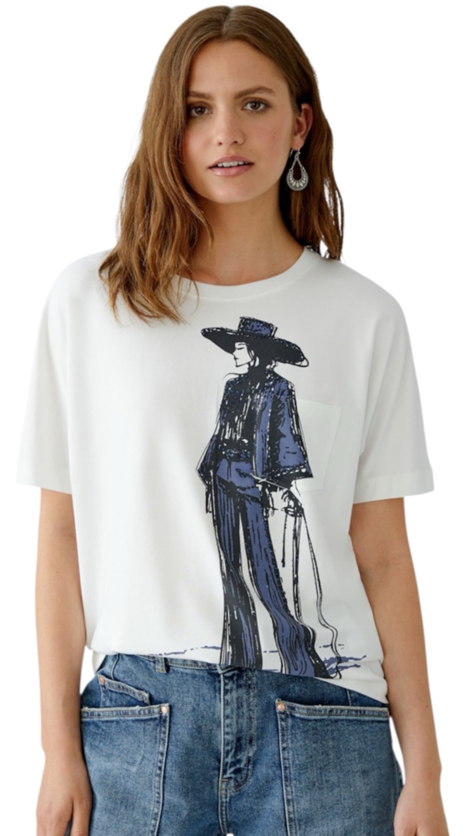 Rodeo Girl: T-shirt printed with a hand-drawn motif and decorated with fine, tonal stones