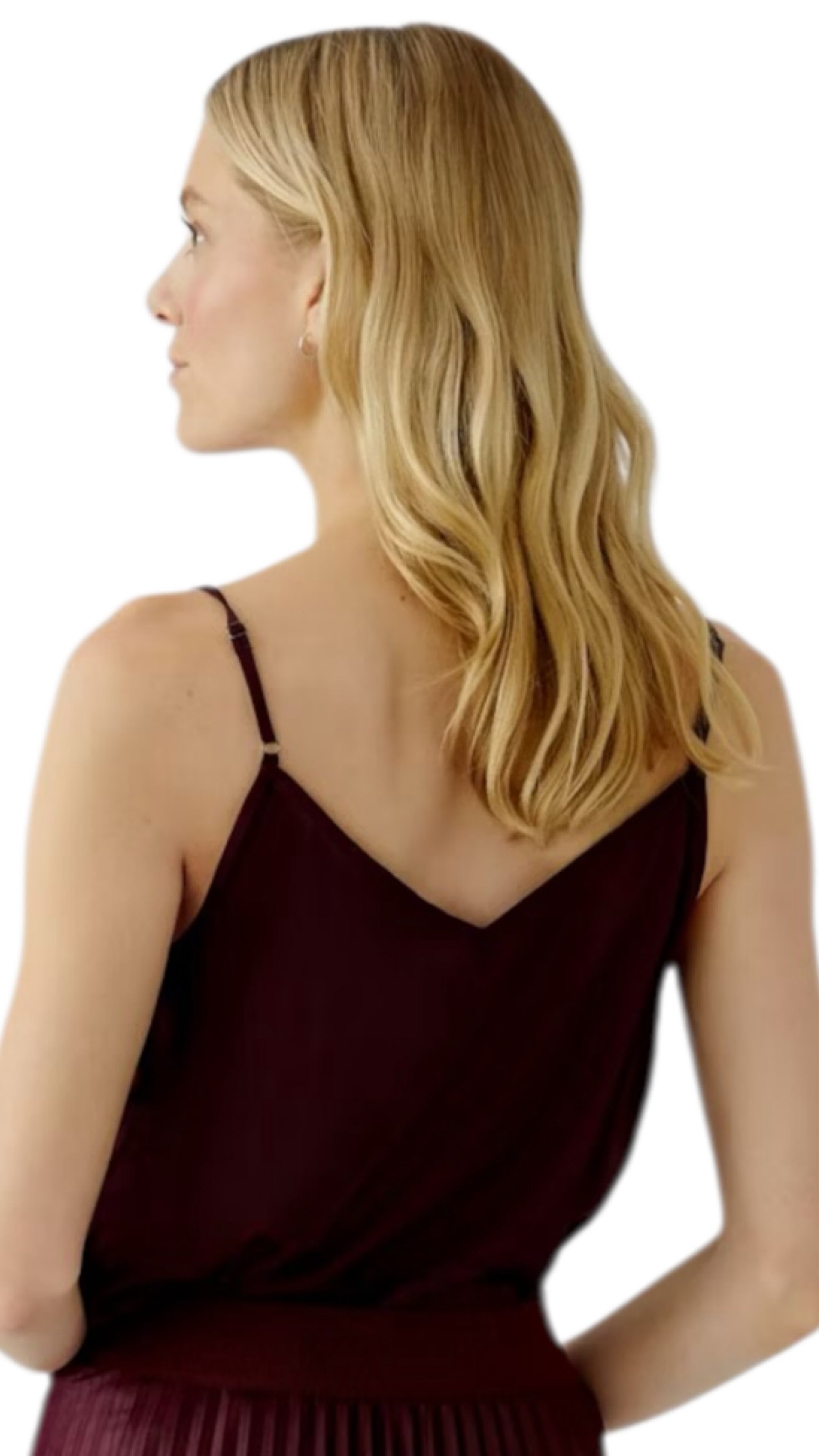 Lingerie trend: Satin top with decorative lace trim - perfect underlayer under a cropped pullover